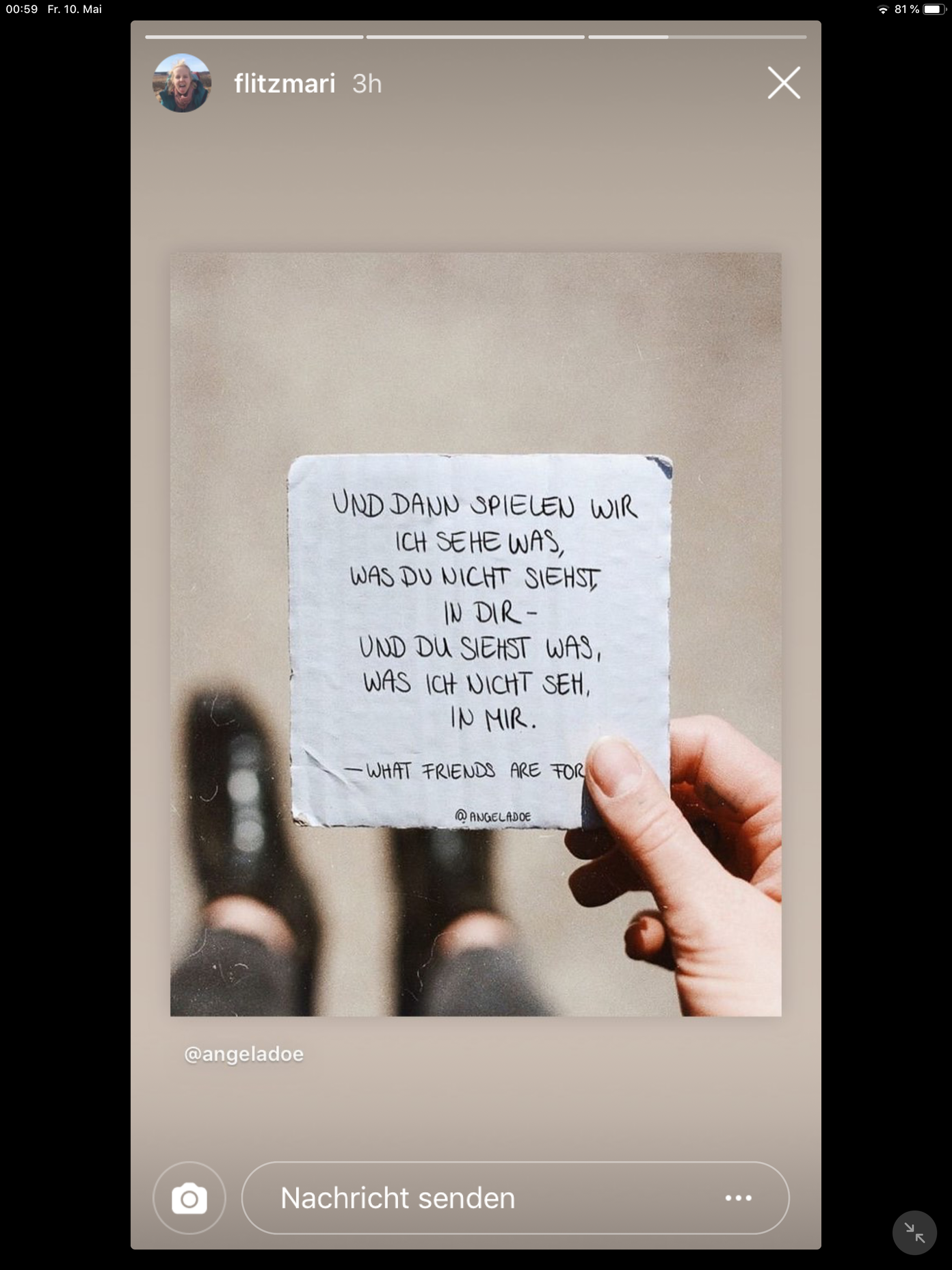 Bei Instagram checke ich den Account von @flitzmari. Die hat ein Foto von @angeladoe weitergeleitet.