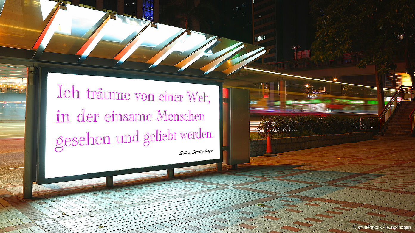 „Ich träume von einer Welt, in der einsame Menschen gesehen und geliebt werden“, würde Selina auf ihr Plakat schreiben.