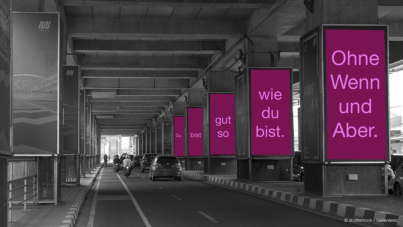 „Du bist gut so wie du bist. Ohne Wenn und Aber.“ steht auf seinem Plakat.