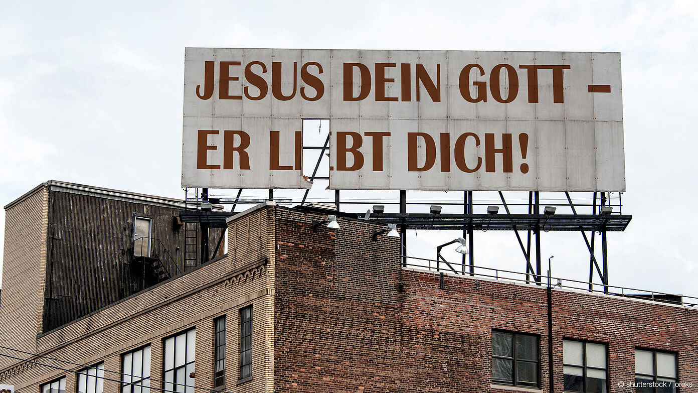 „Jesus dein Gott - er liebt dich!“ steht auf seinem Plakat. Bemerkenswert, wenn man bedenkt, mit welchem Vorhaben er sich ans Lesen der Bibel machte.