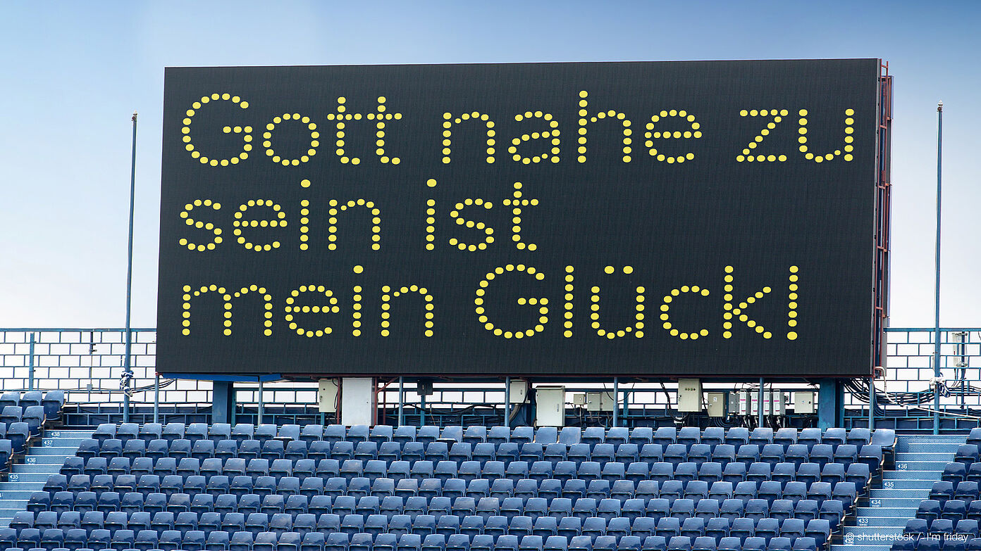 Beim Plakattext muss er nicht lange überlegen: „Gott nahe zu sein ist mein Glück!“ haut er raus und seine Augen strahlen dabei.